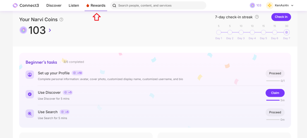 ● Bước 4: Làm nhiệm vụ ở mục Rewards