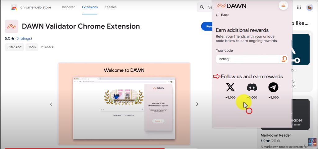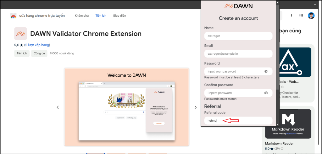 ● Bước 2: Mở extension và đăng ký tài khoản (Referral code: hehnqj)