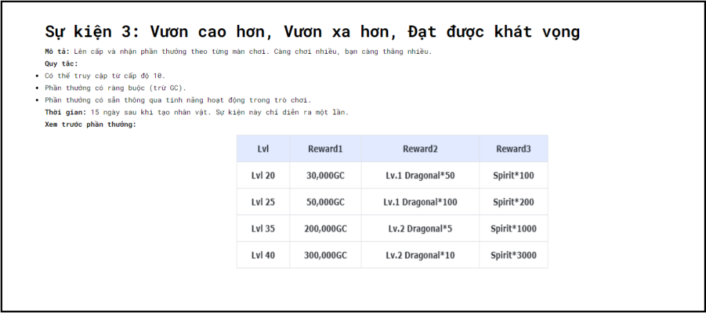● Bước 3: Trải nghiệm game kiếm XP lên LV để nhận các mốc thưởng